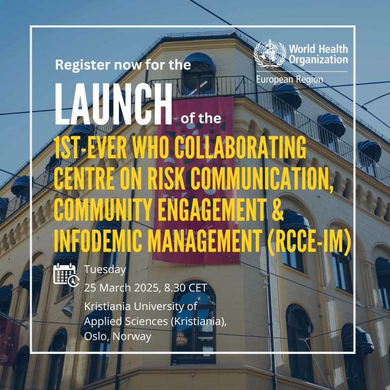 La Asociación Española de Comunicación Sanitaria (AECS) se complace en anunciar la inauguración oficial del WHO Collaborating Centre on Risk Communication, Community Engagement, and Infodemic Management (RCCE-IM), un nuevo centro colaborador de la Organización Mundial de la Salud (OMS) que tendrá su sede en la Universidad de Kristiania, en Oslo (Noruega).